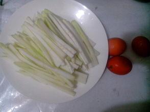 - 将瓠瓜洗净,切成条状,放入盐水中浸泡10分钟,去除苦味。